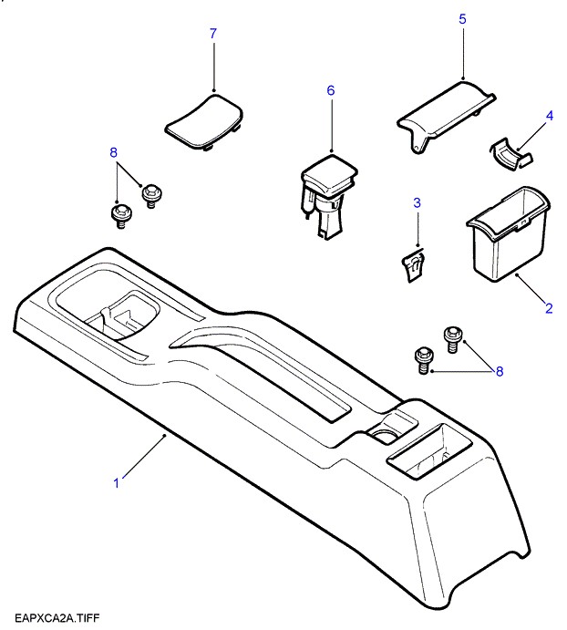 | 5 | LID-TUNNEL CONSOLE ASHTRAY ASH GREY | | (V)YA999999 | 1 | € 6 | AWR5496LNF |